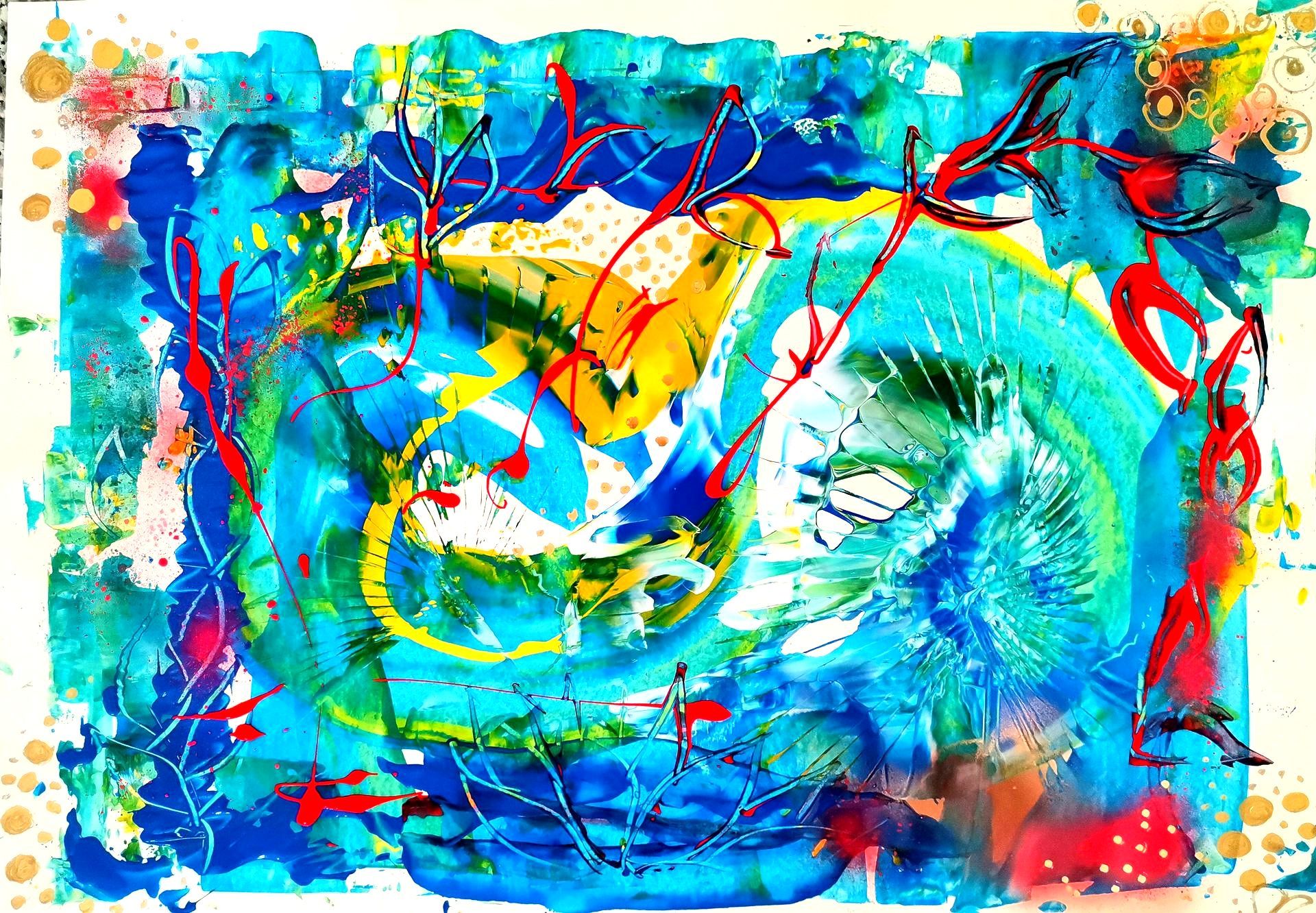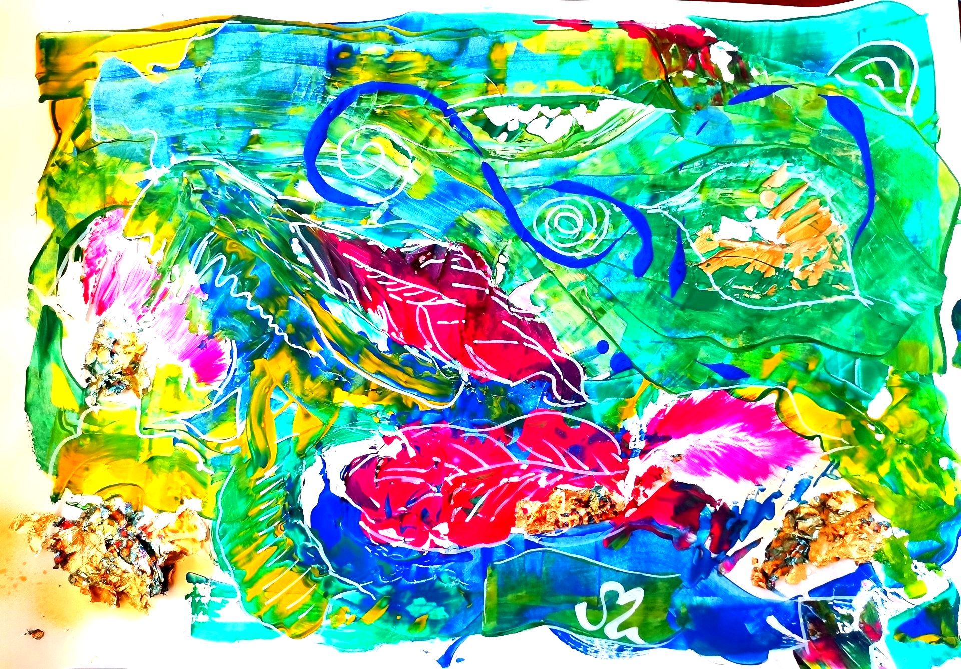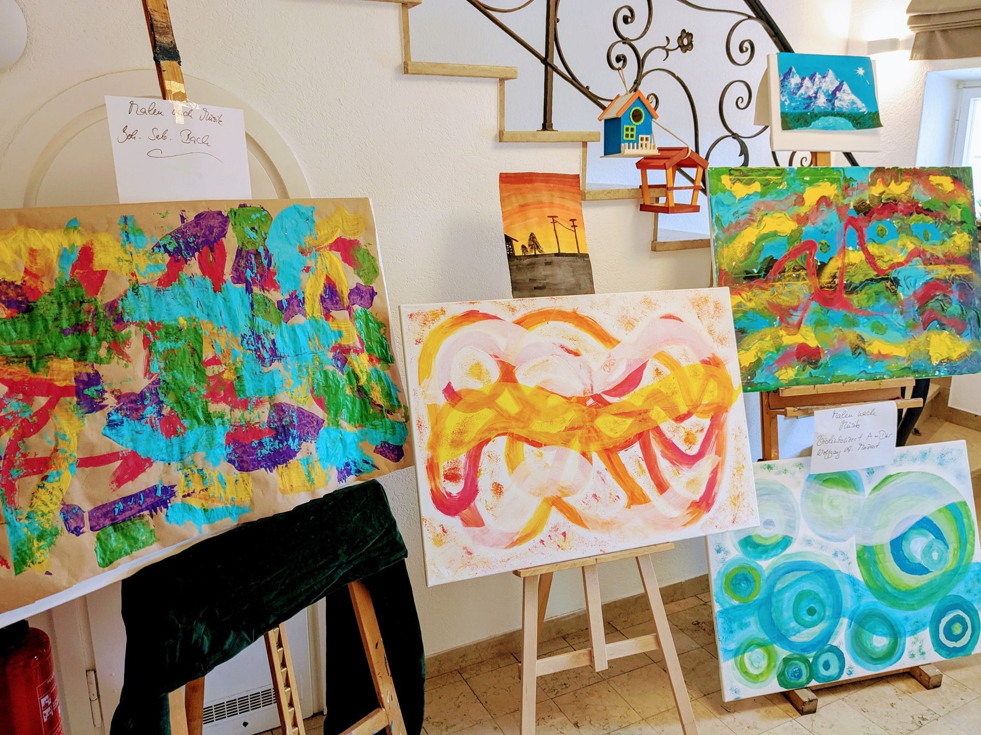 Wir tauchen mit eigener Phantasie und Vorstellungskraft in unsere Erfahrungs -und erlebniswelt ein und bringen sie vielfältig auf Papier und Leinwand. Hierbei ist keine technische oder künstlerische Fertigkeit oder Begabung notwendig, sondern Freude am Entdecken neuer und vielfältiger Ausdrucksmöglichkeiten mit Pinsel, Spachtel, Bürste u.v.m.