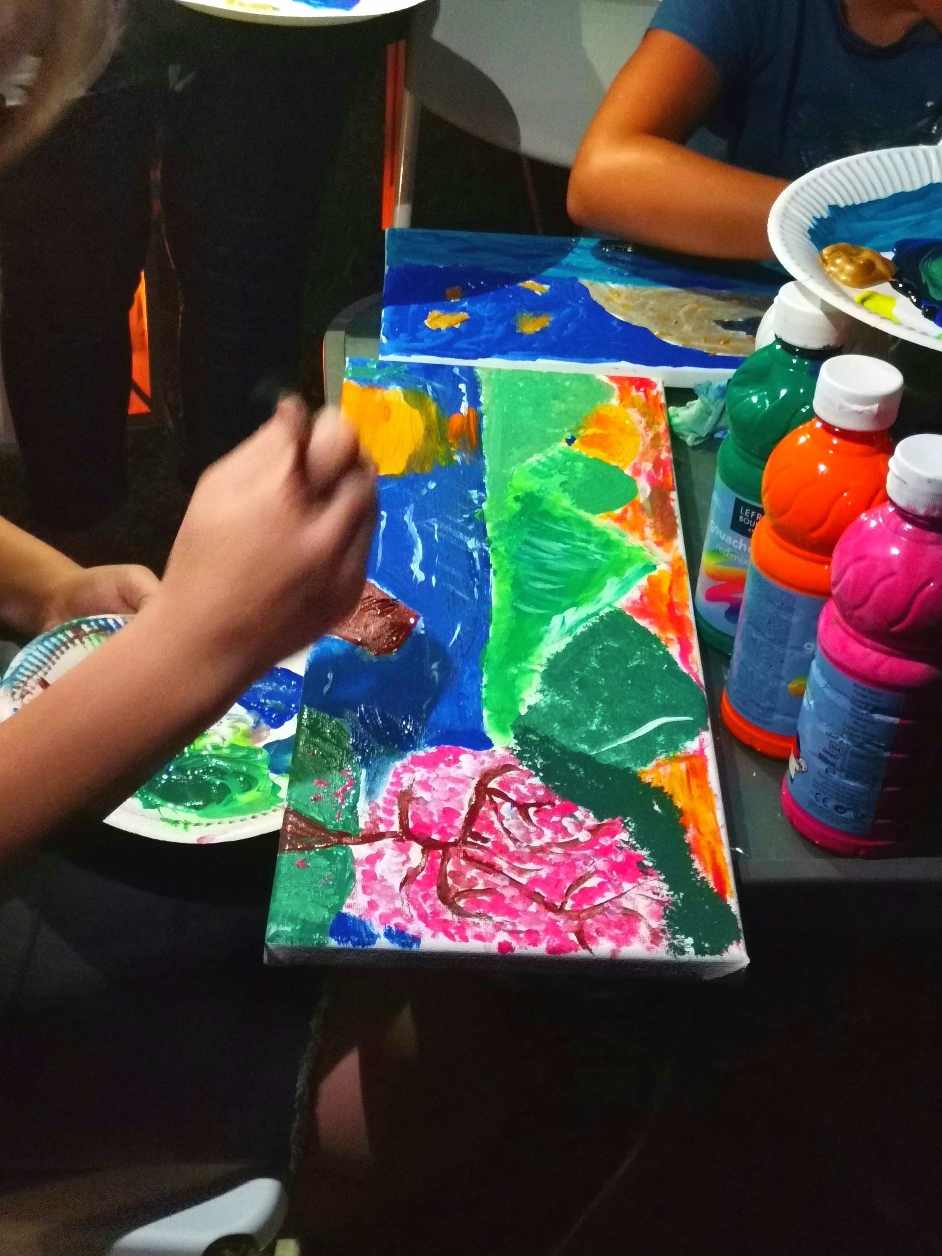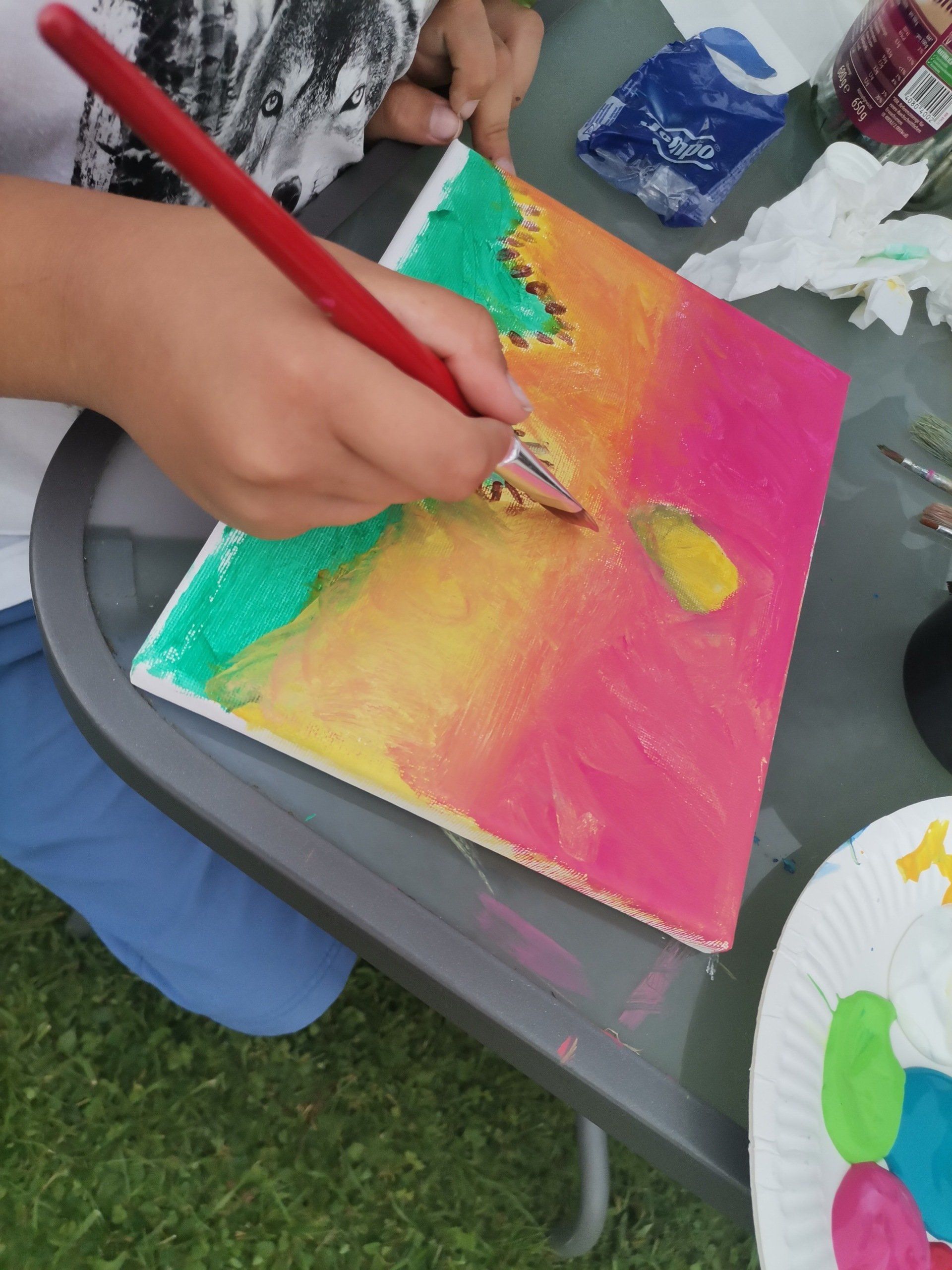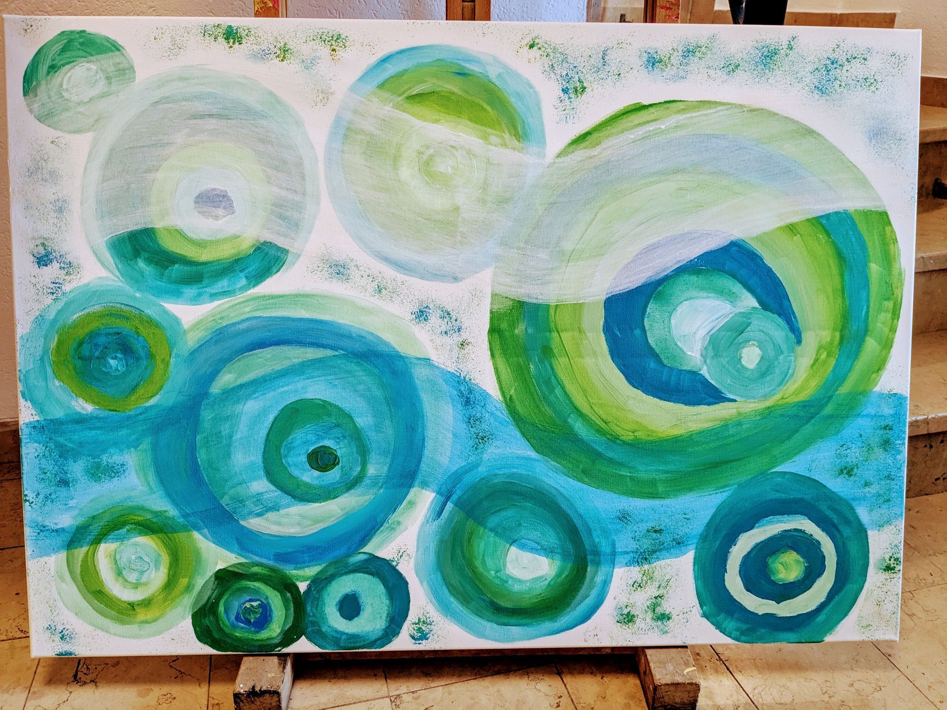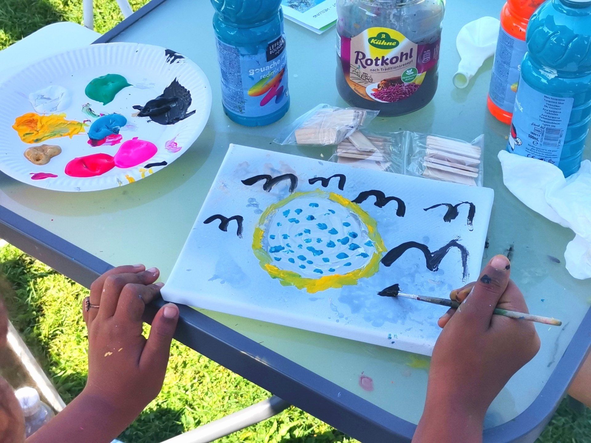 Wir tauchen mit eigener Phantasie und Vorstellungskraft in unsere Erfahrungs -und erlebniswelt ein und bringen sie vielfältig auf Papier und Leinwand. Hierbei ist keine technische oder künstlerische Fertigkeit oder Begabung notwendig, sondern Freude am Entdecken neuer und vielfältiger Ausdrucksmöglichkeiten mit Pinsel, Spachtel, Bürste u.v.m.