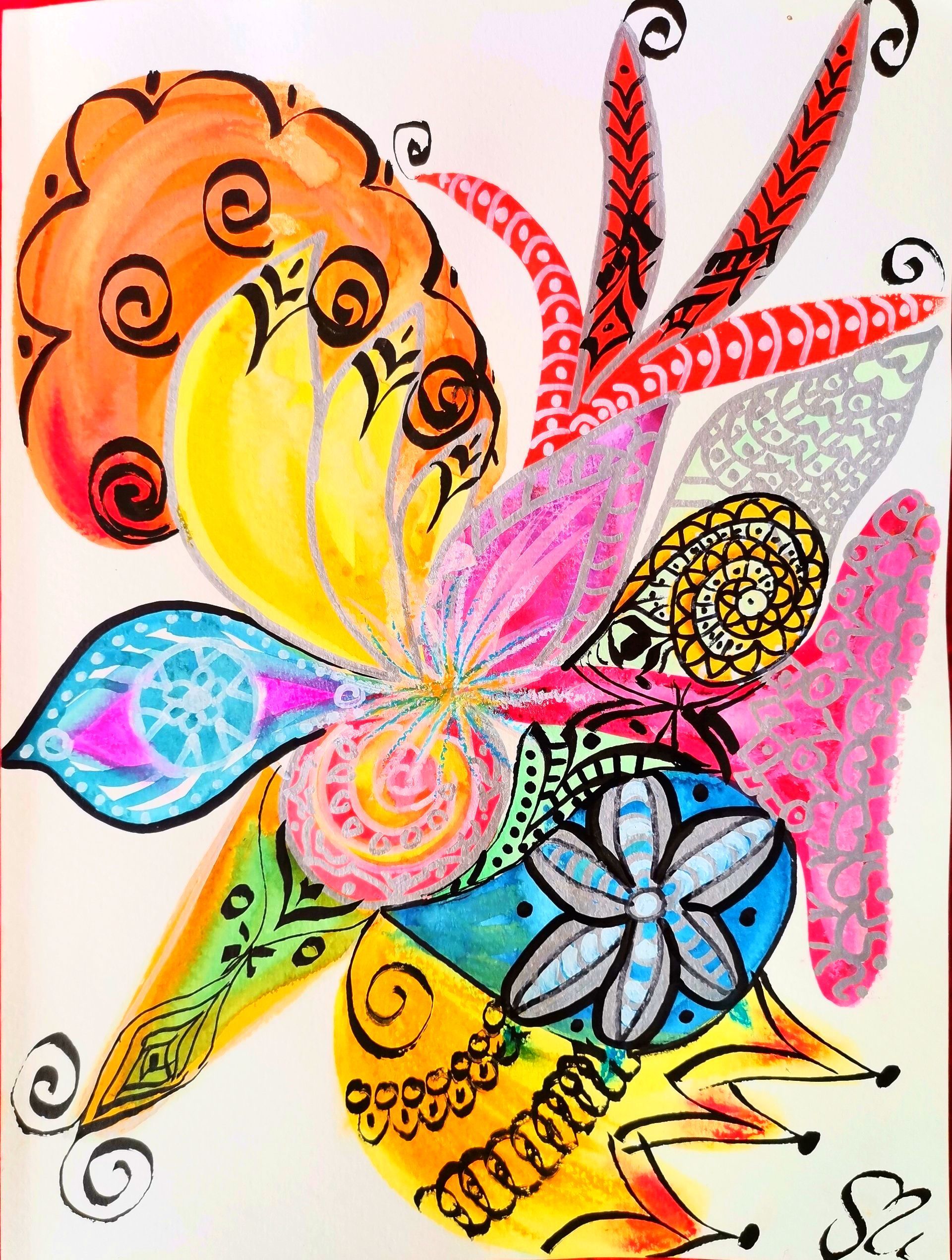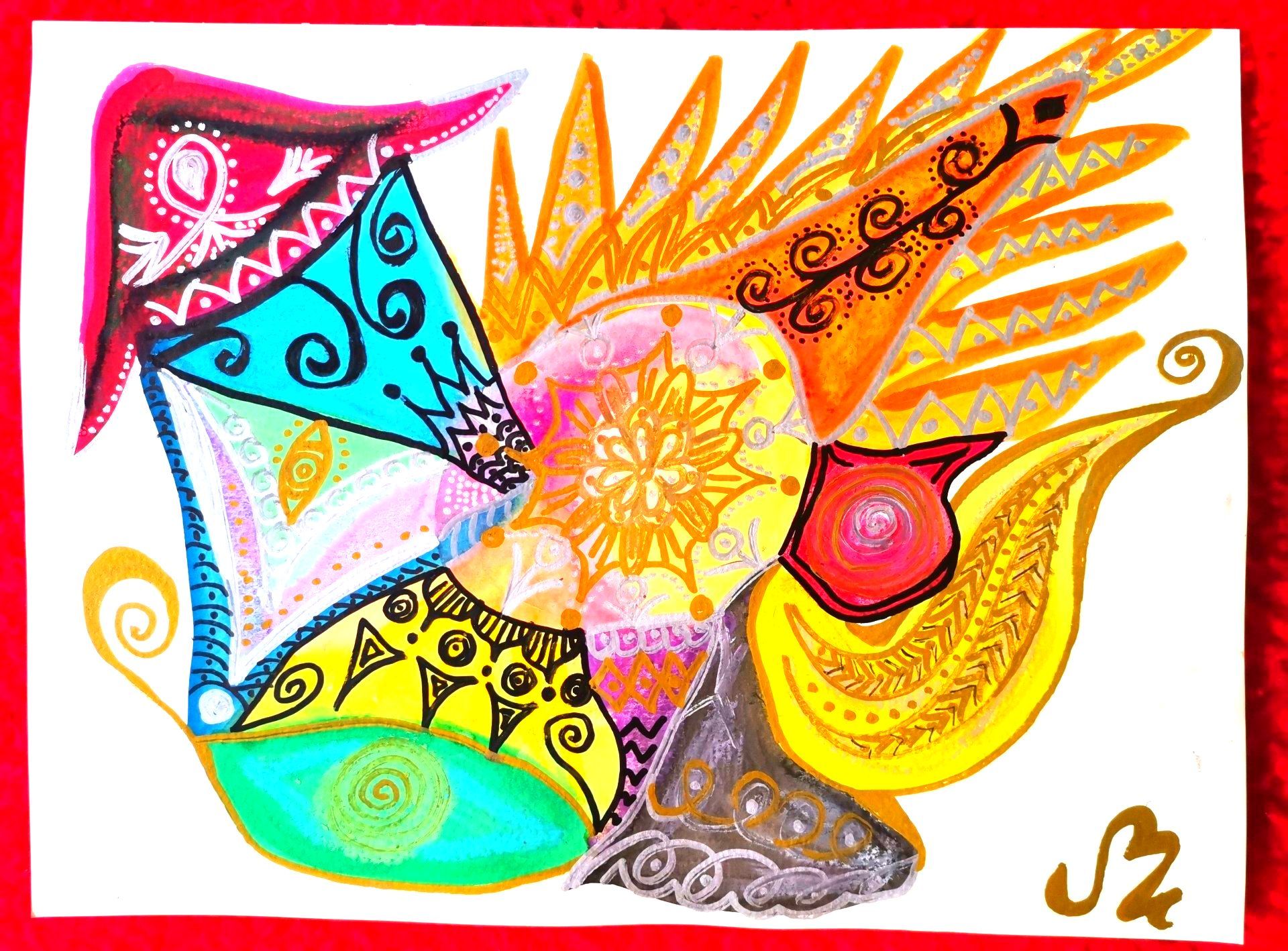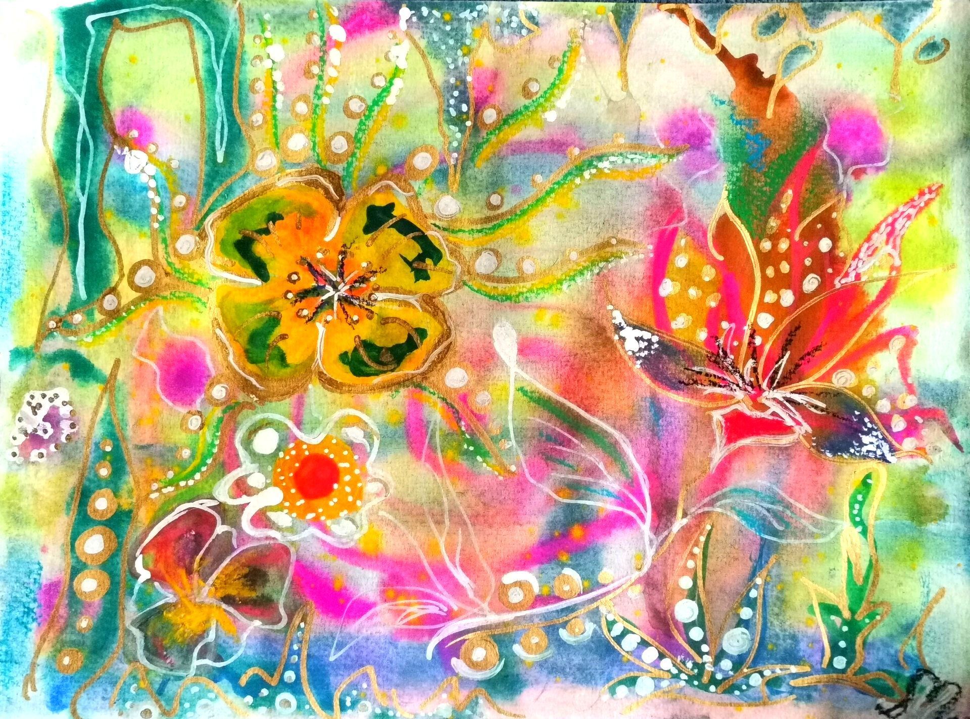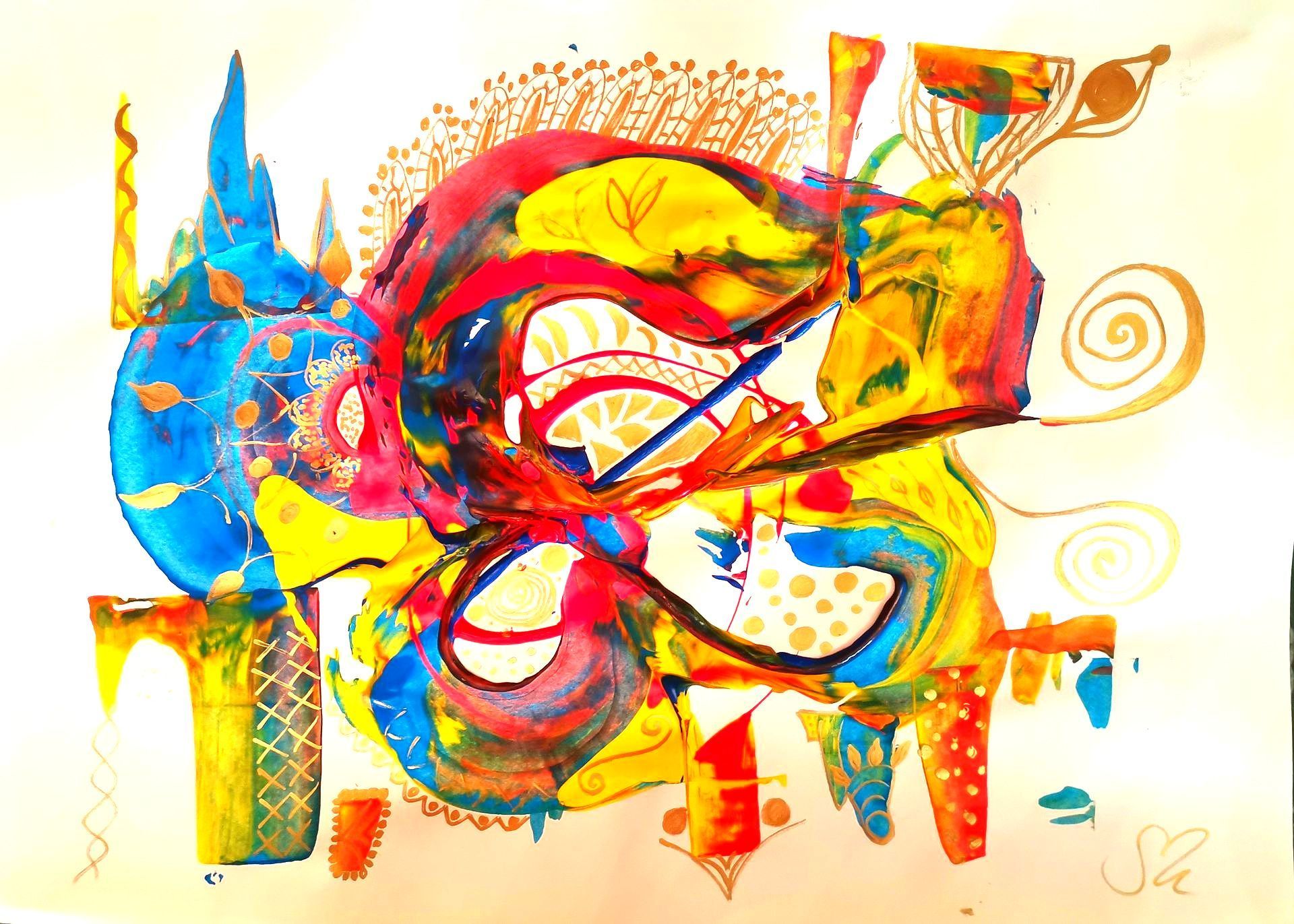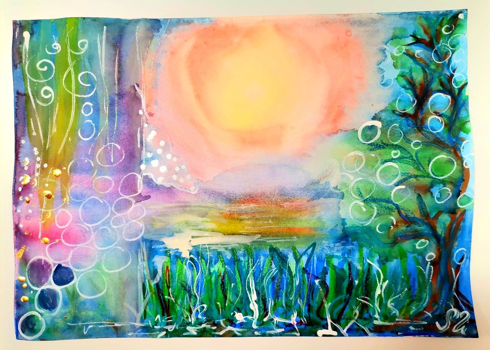 Dabei können freie und auch abstrakte Bildwerke entstehen, wie konkrete Motive aus der inneren und äußeren Erfahrugswelt.