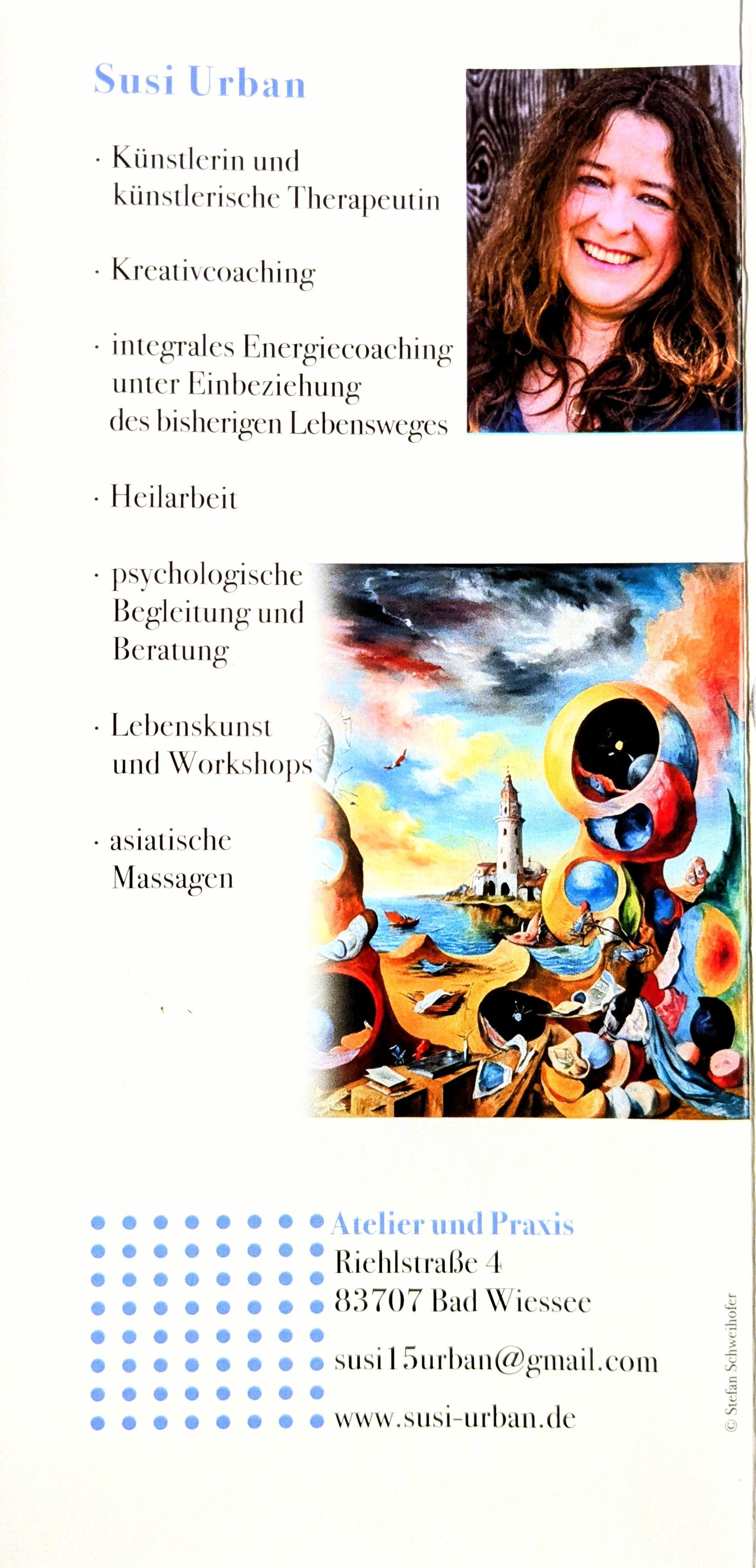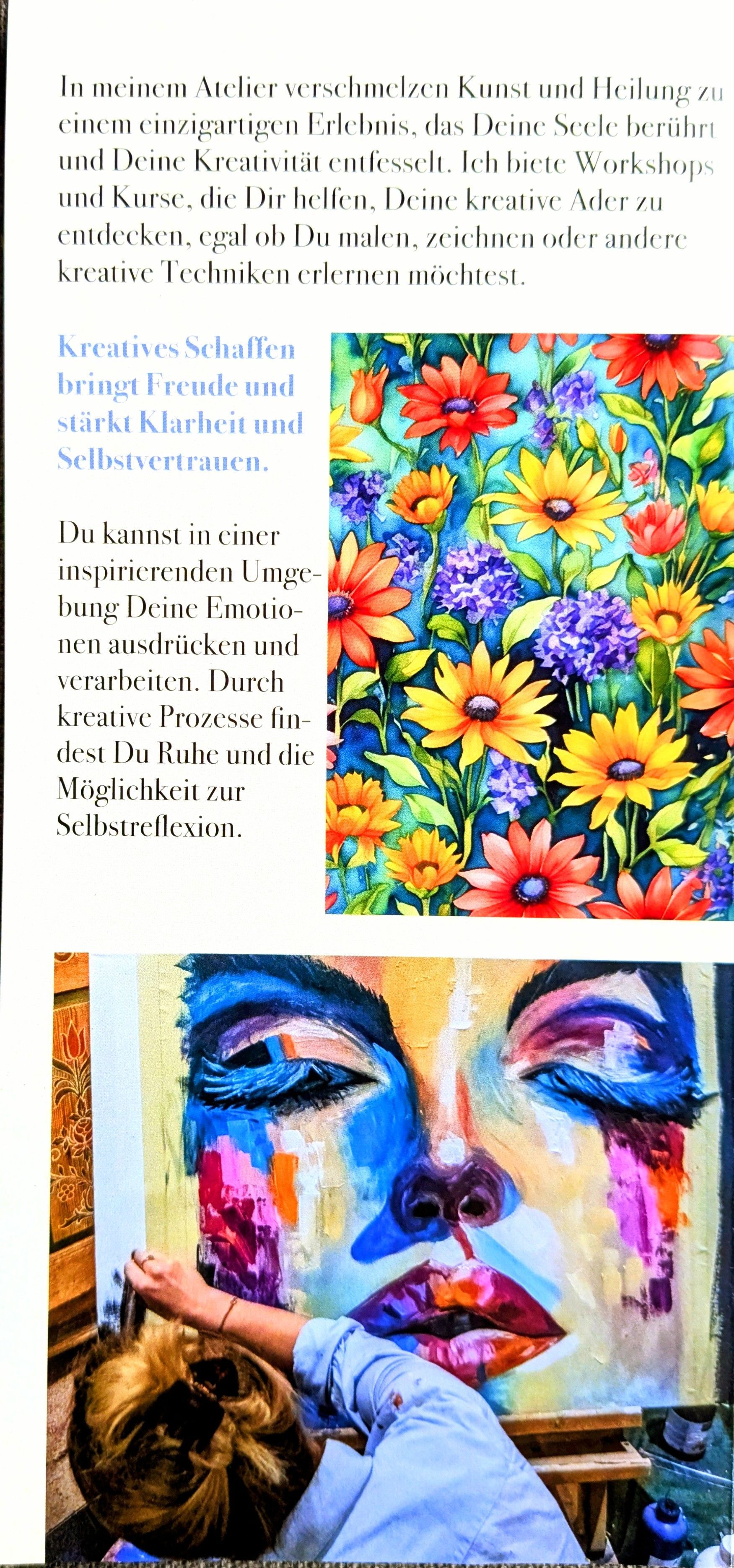 Seit 2024 ergänze ich dieses Atelier für Persönlichkeitsentwicklung mit einer Praxis für manuelle und energetische wie mediale Heilarbeit und Coaching.