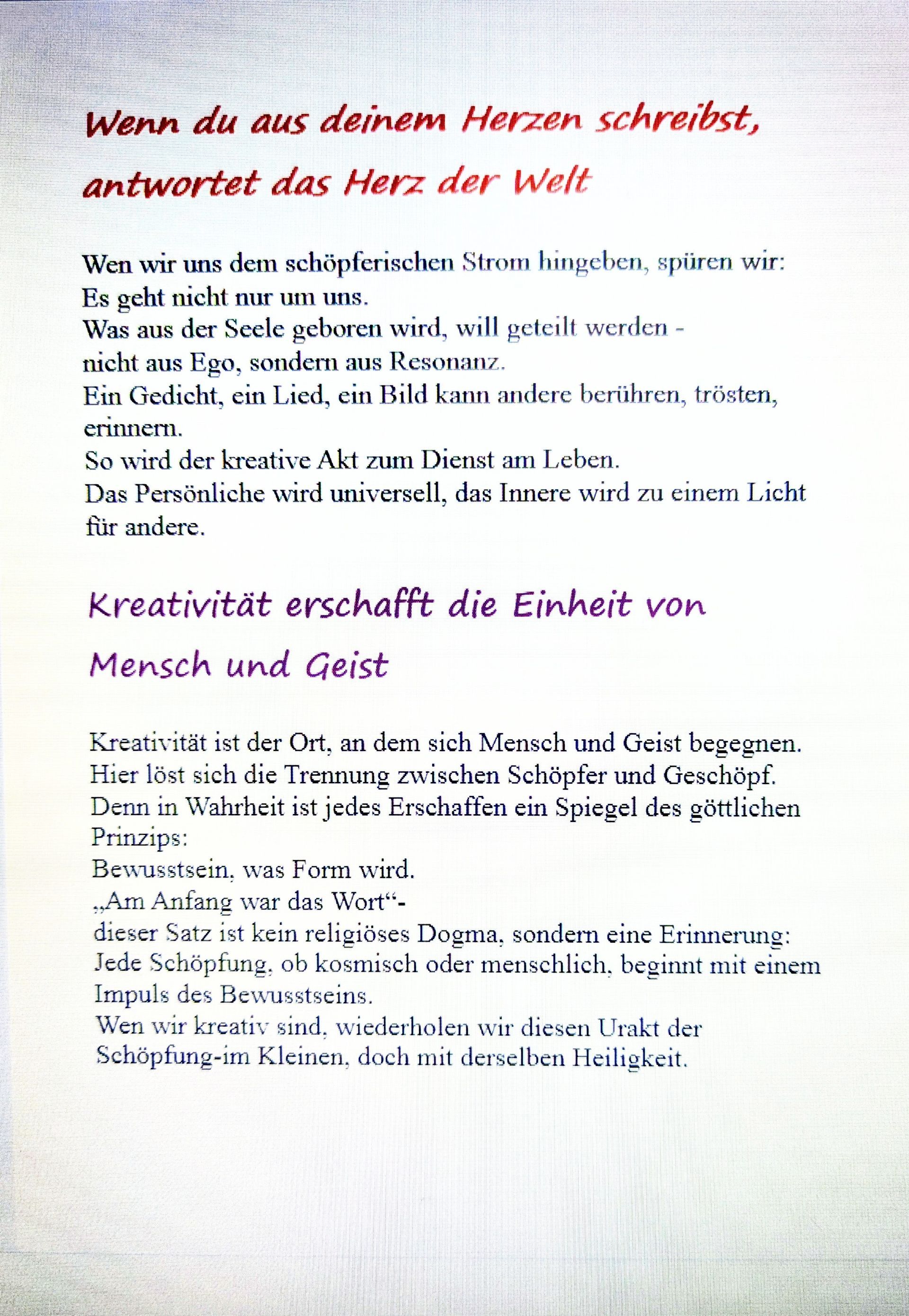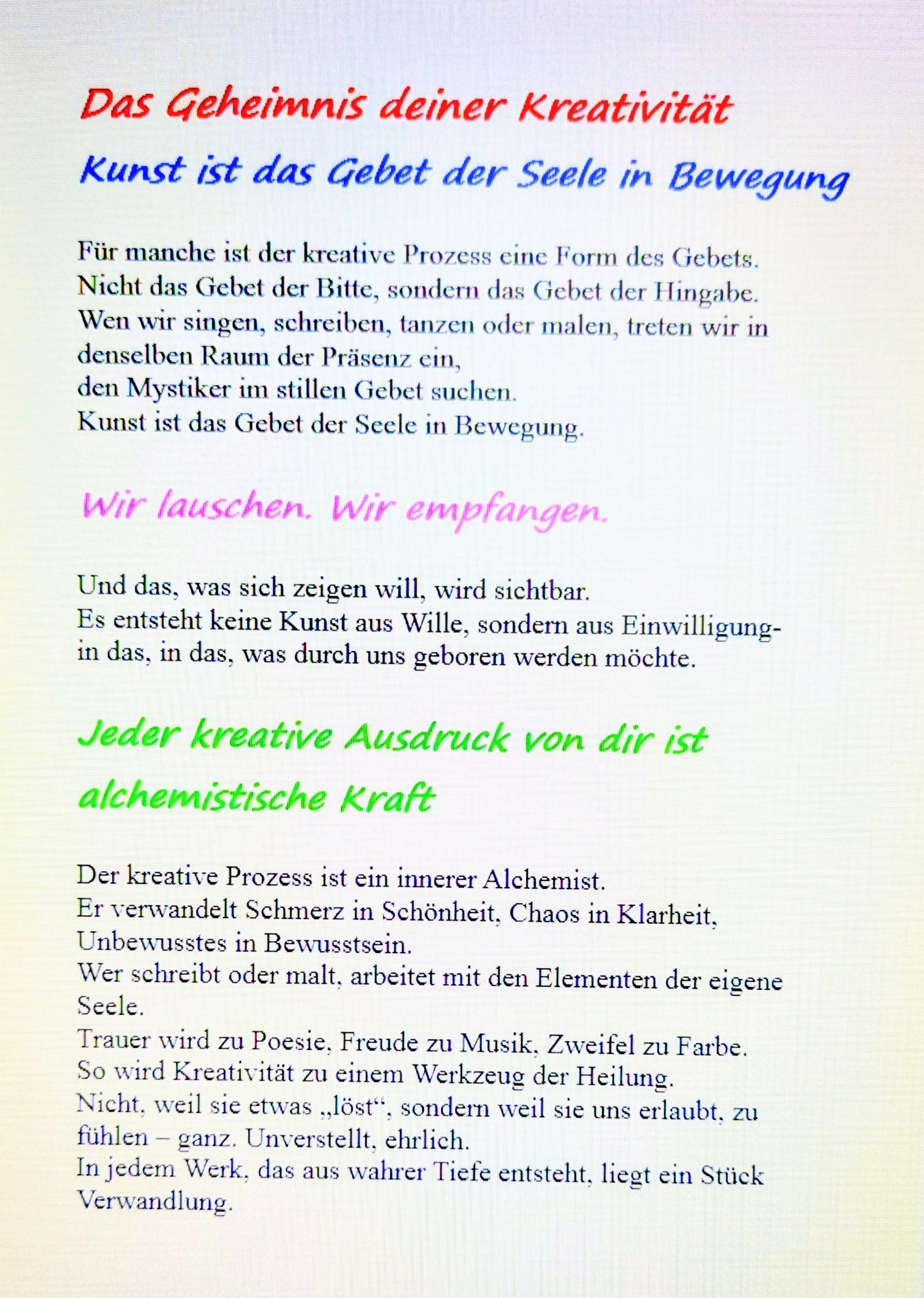 Seit 2024 ergänze ich dieses Atelier für Persönlichkeitsentwicklung mit einer Praxis für manuelle und energetische wie mediale Heilarbeit und Coaching.