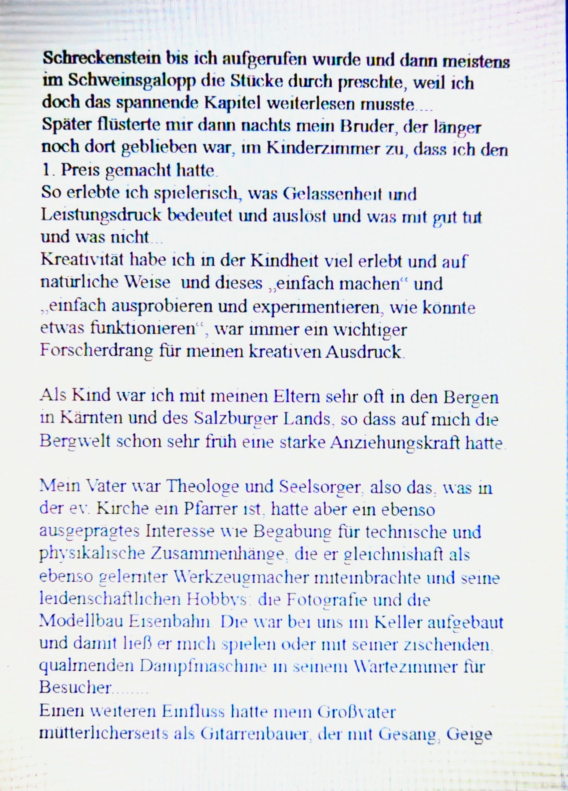 Künstlerische Impulse u.a. ART DIDACTA Sommerakademie Innsbruck bei Mag.art. Bogdan Pascu und Leonardo Kunstakademie Salzburg bei Prof. Hannes Baier.